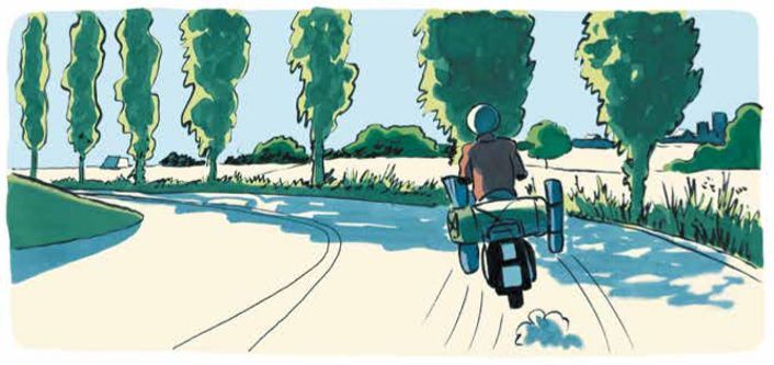 Alors il prend la décision d'enfourcher sa Vespa et de partir pour Marseille, traverser la France et retrouver ce Tristan pour lui expliquer que sa lettre n'est jamais arrivée à sa destinataire. Un voyage d'une semaine à écumer les petites routes de campagnes et dormir dans des campings, des vacances et une belle aventure.