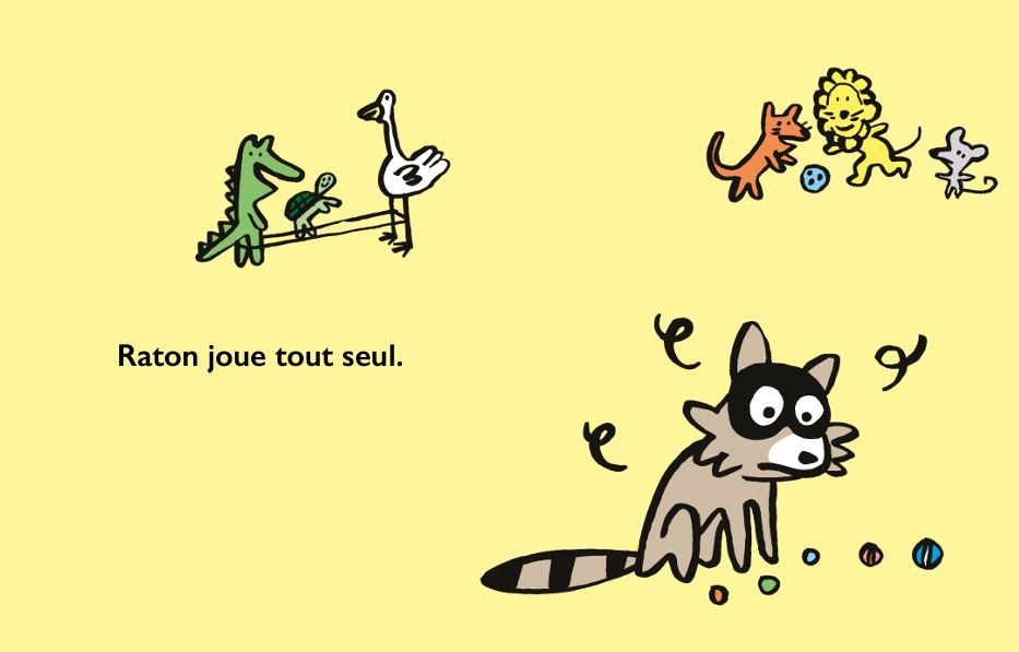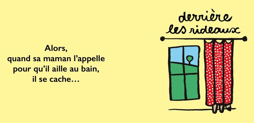 Un bel album très coloré, amusant et m'ayant soufflé une sacré bonne idée ah ah ah! Sur fond jaune les personnage et les lieux emplissent l'espace avec une phrase qui explique clairement la situation. J'ai été amusé par ce petit récit qui plaira forcément aux jeunes lecteurs et rendra service à bien des mamans.